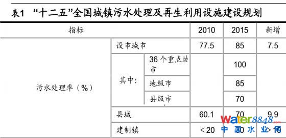 水處理行業(yè)深度報告之二:市政水務(wù)市場化與再生水是長期趨勢 《“十二五”全國城鎮(zhèn)污水處理及再生利用設(shè)施建設(shè)規(guī)劃》