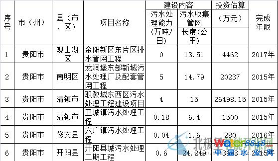 貴州《城鎮(zhèn)生活污水處理(含管網(wǎng)配套)設(shè)施建設(shè)項目表》 印發(fā)《貴州省環(huán)境污染治理設(shè)施建設(shè)三年行動計劃(2015—2017年)》