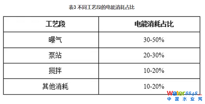 在一個改良活性污泥工藝的污水處理廠內(nèi),電能消耗如表3所示: