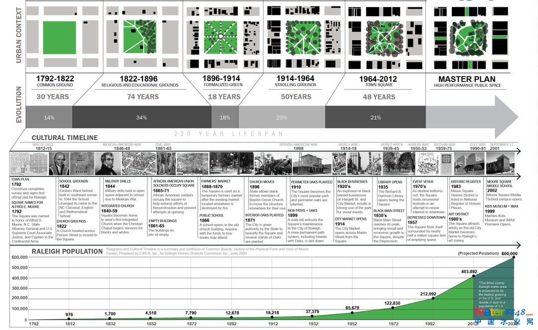 但是這塊城市瑰寶正在走向破敗,急需改建以適應(yīng)羅利市繁榮的城市生活。摩爾廣場(chǎng)的整體規(guī)劃是基于其最獨(dú)特、