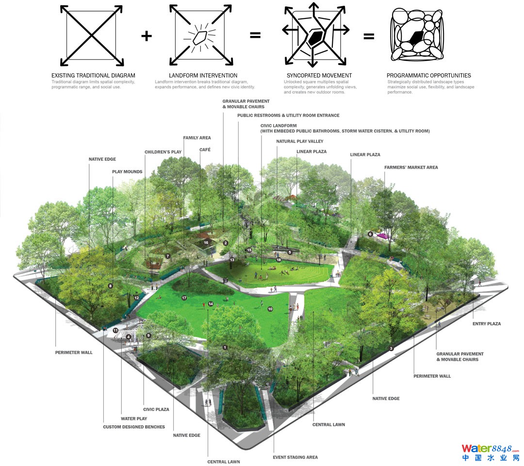 能拓展到最大化,在這塊4英畝的廣場(chǎng)上,人們將有更多的娛樂(lè)選擇和體驗(yàn),這樣的戶外環(huán)境將占地面積和多功能