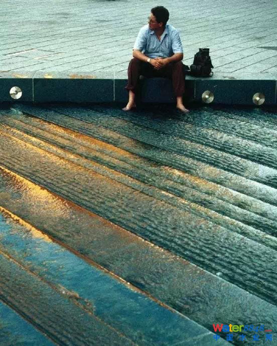 例如德國的柏林波茨坦廣場(Potsdamer Platz),占總面積19%的用地被規(guī)劃為水面,可收納周邊屋面和地面的雨水約1.5萬m3。雨水在注入廣場水體之前,先要經(jīng)過種植有水生植物和培養(yǎng)在上面的微生物構(gòu)成的凈化水塘,完成水的凈化和二次過濾,保證水體有清潔健康的品質(zhì)。