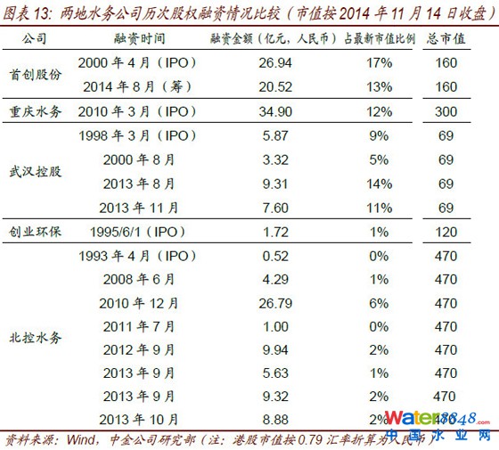 上文第一部分已經(jīng)展示了A股和港股融資的一個(gè)重大區(qū)別,上市之后,不完全統(tǒng)計(jì)北控已經(jīng)進(jìn)行了多次融資,累計(jì)在市場(chǎng)上融了65億人民幣,而且?guī)缀跏堑搅穗S治隨走的地步,帶動(dòng)營(yíng)收穩(wěn)步提升坐上行業(yè)第一的位置(詳見(jiàn)下篇)…而首創(chuàng)股份發(fā)力之后的融資是一波就干20億,量足管飽,但是制度上的問(wèn)題流程真心慢,13年提案到14年才過(guò)審...