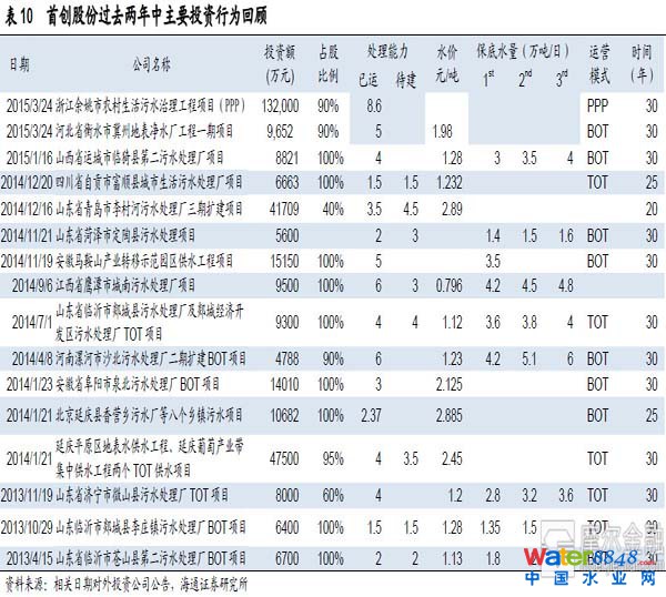 小結(jié):首創(chuàng)股份的連串動(dòng)作都和預(yù)期的一致,不停的并購(gòu)和新增項(xiàng)目,特別是14年開(kāi)始出現(xiàn)明顯的加速趨勢(shì),在15年也保持了相當(dāng)迅猛的勢(shì)頭,大的方向是向好的,和A股其他水務(wù)公司一橫向?qū)Ρ炔顒e就出來(lái)了,首創(chuàng)的動(dòng)作是最快,執(zhí)行最到位的,但是這么沖的這么猛,資金流頂不頂?shù)米。之后?huì)不會(huì)出現(xiàn)把非水務(wù)環(huán)保類(lèi)的資產(chǎn)賣(mài)回給集團(tuán)公司,繼續(xù)套現(xiàn)買(mǎi)買(mǎi)買(mǎi)?