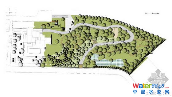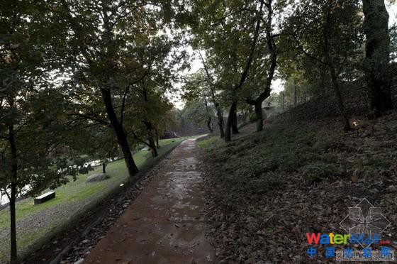 山體的地表徑流,有一部分將通過(guò)這個(gè)景墻上的出水口,匯入生態(tài)景觀水池中。小棧橋把生態(tài)景觀水池劃分出一個(gè)小水面、一個(gè)大水面。小水面結(jié)合了景墻與流水,相對(duì)細(xì)膩;大水面以生態(tài)式造景為主,更顯自然。
