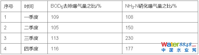 表 3 污水原有處理程度與至確定出水值處理程度的曝氣量之比