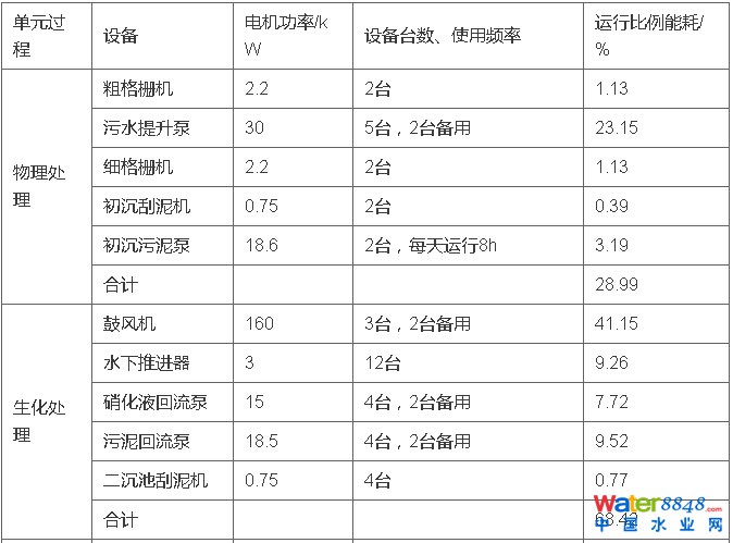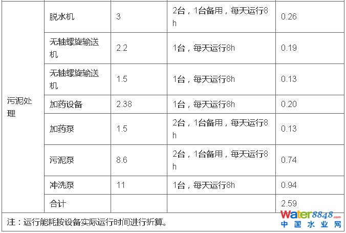 表 1 污水處理廠設(shè)備功率及運(yùn)行能耗