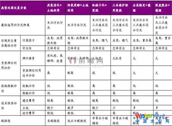 圖表:典型污泥處理處置技術的綜合分析與評價