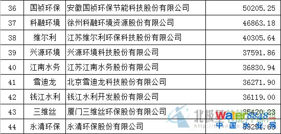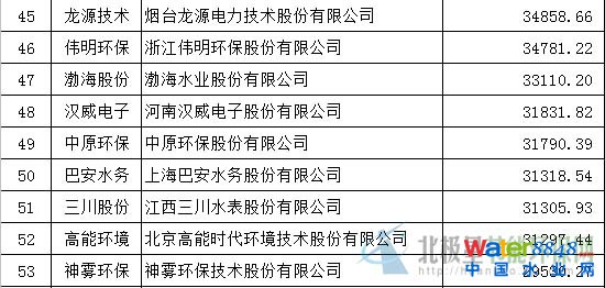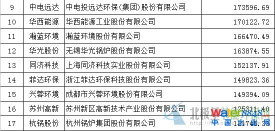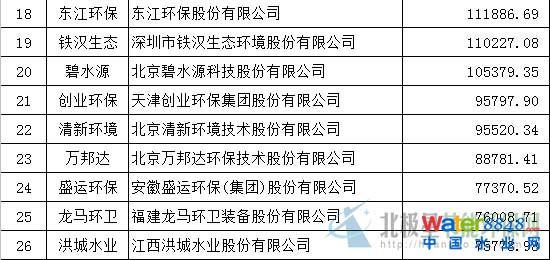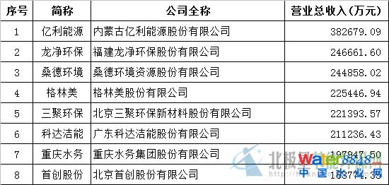 環(huán)保上市公司2015上半年?duì)I業(yè)收入排名