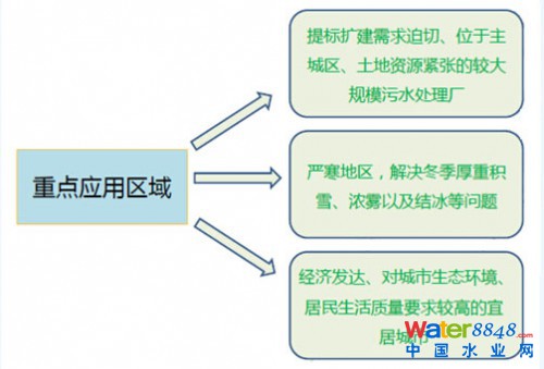 應(yīng)用在哪些重點應(yīng)用區(qū)域?1、提標擴建需求迫切、位于主城區(qū)、土地資源緊張的較大規(guī)模污水處理廠。2、嚴寒地區(qū),解決冬季厚重積雪、濃霧以及結(jié)冰等問題。3、經(jīng)濟發(fā)達、對城市生態(tài)環(huán)境、居民生活質(zhì)量要求較高的宜居城市。