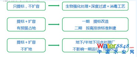 對于城市污水廠提標、改建要求,因地制宜,采用不同的建設(shè)模式與技術(shù)路線。針對地表改造,只提標不擴容,有相應(yīng)的工藝;提標加擴容有預(yù)留地也有相應(yīng)的安排;又要提標又要擴容,但是沒有地怎么辦?這時候地下污水處理廠在理論上就應(yīng)運而生了。
