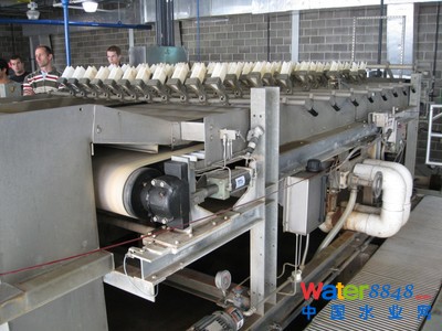 污泥脫水機(jī)(和以前見過的履帶式有點(diǎn)不一樣,上面那些像桌上足球游戲的白色塑料塊不知道是什么作用的)
