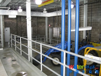 老佛爺市污水處理廠位于娃爸是河(Wabash River)畔的娃爸是大道(Wabash Ave. OMG,娃爸是大盜,再這樣音譯下去我會(huì)走火入魔的……)上,服務(wù)人口5萬余(很小的規(guī)模),日處理水量6.4萬立方米(美國人產(chǎn)污水的能力真強(qiáng)),設(shè)計(jì)高峰流量10萬立方米,單位處理成本約90美分每噸。市政、工業(yè)和雨水合流制管網(wǎng)。