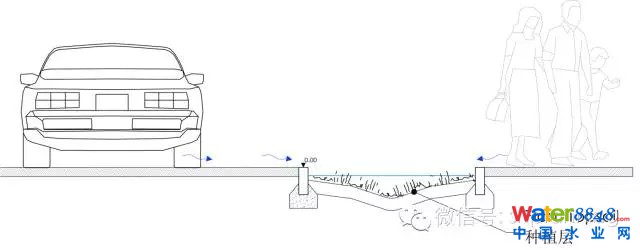 下凹草溝:它是最簡(jiǎn)單的一種洼地形式,使徑流得到有限的下滲和凈化。充分利用帶狀綠地下凹的形式,控制調(diào)整好路面高程、綠地高程和雨水口高程的關(guān)系,便可利用柔和的縱向坡度緩慢地輸送徑流,蓄滿綠地后流入雨水口。