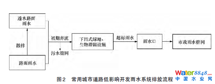 常用城市道路低影響開發(fā)雨水系統(tǒng)排放流程如圖 2 所示。