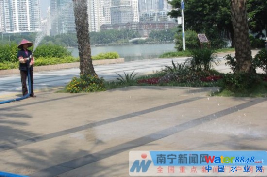 “園林工人用水槍往廣場(chǎng)上噴水,水沒有積在地面上,而是通過(guò)特殊的透水磚全部滲到了地下。”當(dāng)天,記者在濱湖廣場(chǎng)看到了這一幕。濱湖廣場(chǎng)是南寧市海綿城市改造示范工程之一。沒有改造前的濱湖廣場(chǎng),因?yàn)榈孛嬗不壤^(guò)高,逢雨必澇、雨后即旱,同時(shí)還將未經(jīng)處理的雨水直接排向南湖,對(duì)南湖水質(zhì)造成了嚴(yán)重的污染。為此,整個(gè)濱湖廣場(chǎng)綜合采用了“滲、滯、蓄、凈”的方式對(duì)道路、綠地和徑流污染控制進(jìn)行“海綿化”改造。“南湖周邊我們都計(jì)劃鋪上透水磚,下雨的時(shí)候,雨水就會(huì)滲到了地下,并經(jīng)過(guò)下面的排水系統(tǒng)流進(jìn)儲(chǔ)水池,再用于綠化灌溉。”現(xiàn)場(chǎng)工作人員介紹說(shuō)。