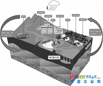 發(fā)達國家在城鎮(zhèn)化進程中,也曾出現(xiàn)過水體嚴重污染、內(nèi)澇災(zāi)害頻發(fā),生態(tài)環(huán)境惡化等類似情況。一些國家通過實施雨水的綜合管理,在20世紀90年代初就提出“低影響開發(fā)”的理念,即在人工系統(tǒng)的開發(fā)建設(shè)活動中盡可能減少對自然生態(tài)系統(tǒng)的沖擊和破壞。低影響開發(fā)的方法包括儲存、下滲、蒸發(fā)、滯留,以削減地表徑流,促進地下水補充,通過分散、小規(guī)模的源頭控制機制和設(shè)計技術(shù),達到對暴雨徑流和污染的控制,從而使開發(fā)區(qū)域盡量接近于開發(fā)前的自然水文循環(huán)狀態(tài)。
