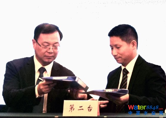 中航環(huán)衛(wèi)以PPP攬邯鄲15億元的環(huán)衛(wèi)項(xiàng)目 圖為中航環(huán)衛(wèi)董事長曹虎正就15億PPP項(xiàng)目與邯鄲市領(lǐng)導(dǎo)簽約