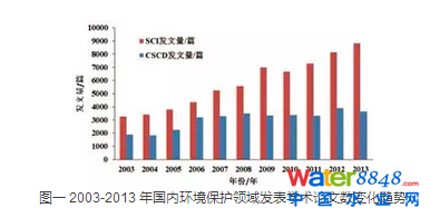 圖一 2003-2013 年國(guó)內(nèi)環(huán)境保護(hù)領(lǐng)域發(fā)表學(xué)術(shù)論文數(shù)變化趨勢(shì)