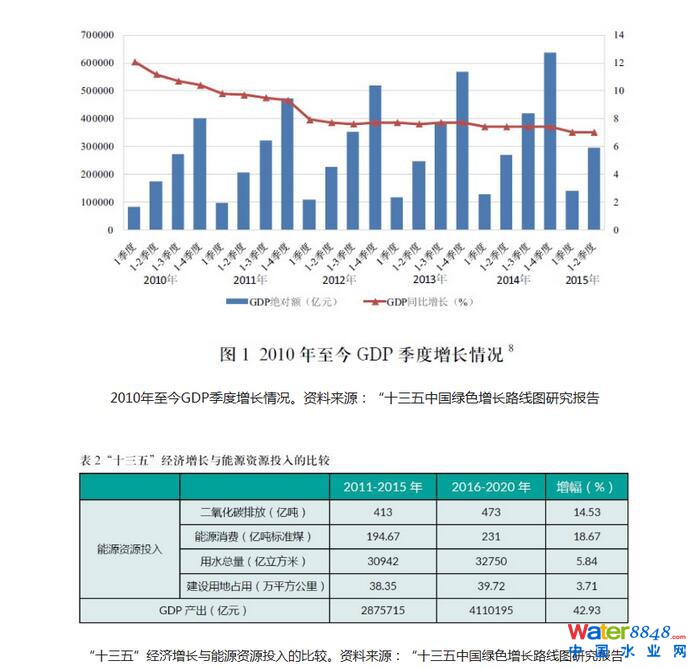 研究報告稱,中國經(jīng)濟在經(jīng)過三十多年的持續(xù)高速增長后,開始進(jìn)入增速換擋期。隨著經(jīng)濟增速放緩,資源環(huán)境壓力有所緩和,但污染物排放仍居高位、能源資源利用效率仍然較低,環(huán)境質(zhì)量改善與全面建設(shè)小康社會和生態(tài)文明建設(shè)的目標(biāo)依然存在較大差距。在經(jīng)濟保持持續(xù)增長和資源環(huán)境約束趨緊的雙重壓力下,中國在“十三五”期間面臨著十分緊迫的綠色增長需求。