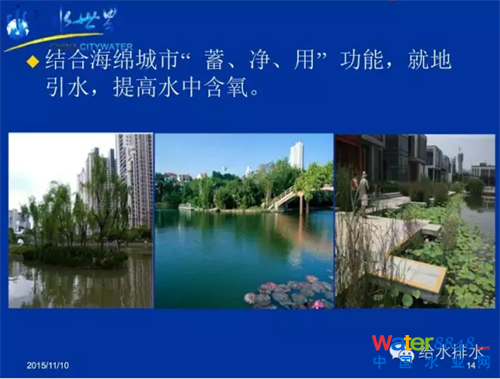 結(jié)合海綿城市的“滲、滯、蓄、用”功能,就地引水,提高水中含氧。