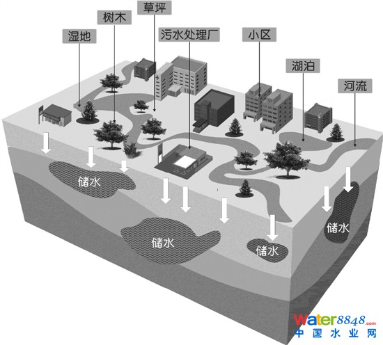 通過雨水花園、下凹式綠地、透水混凝土澆筑地面等手段,大部分雨水會(huì)自然而然地滲入土地中,起到補(bǔ)充地下水的作用。