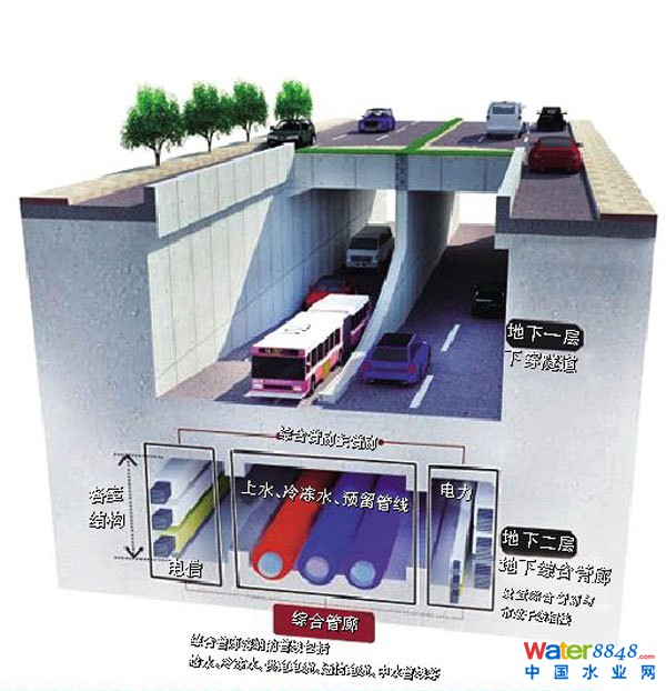 國(guó)內(nèi)城市通用綜合管廊示意圖。圖片來(lái)源于網(wǎng)絡(luò)