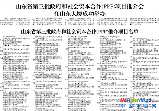 山東省第三批政府和社會(huì)資本合作(PPP)項(xiàng)目推介會(huì)在山東大廈成功舉辦 水務(wù)(11個(gè)) 環(huán)保(15個(gè))