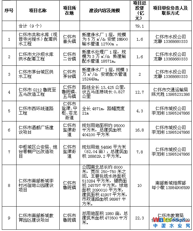 仁懷市2015年第一批PPP模式招商項(xiàng)目明細(xì)表