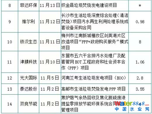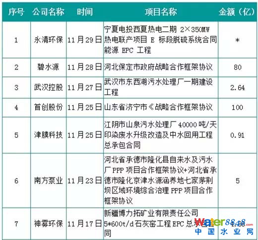11月環(huán)保上市公司中標項目逾210億 8名高管離職
