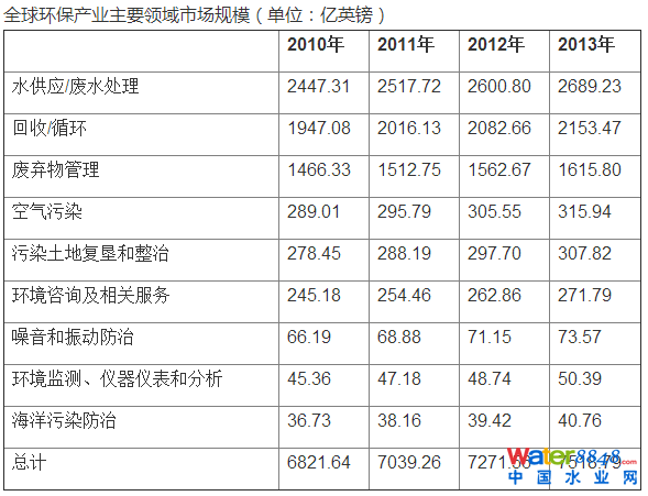 隨著全球經(jīng)濟(jì)一體化、環(huán)境保護(hù)和可持續(xù)發(fā)展的呼聲日盛,世界環(huán)保市場(chǎng)也出現(xiàn)迅速發(fā)展的勢(shì)頭,發(fā)達(dá)國家和地區(qū)在技術(shù)水平和市場(chǎng)份額上占有絕對(duì)的優(yōu)勢(shì),2013年全球環(huán)保產(chǎn)業(yè)的市場(chǎng)規(guī)模已達(dá)到7518.79億英鎊。