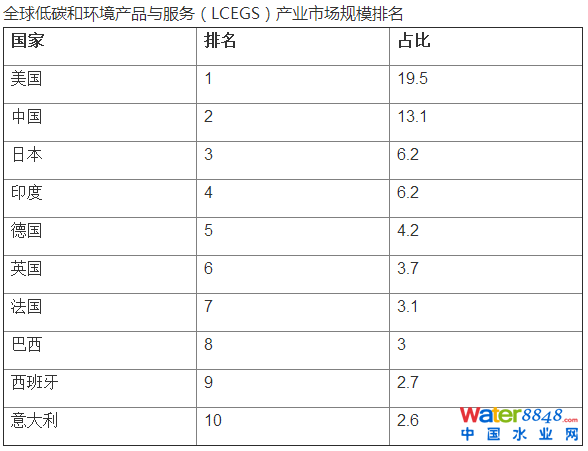 據(jù)博思數(shù)據(jù)發(fā)布的《2016-2020年中國環(huán)保產(chǎn)業(yè)市場(chǎng)分析與投資前景研究報(bào)告》表明:從地域分布看,全球廣義環(huán)保產(chǎn)業(yè)(包括低碳產(chǎn)業(yè)和可再生能源產(chǎn)業(yè))市場(chǎng)中亞洲占據(jù)的市場(chǎng)份額為38%;美洲和歐洲位居其后,分別占據(jù)30%和28%的市場(chǎng)份額。從廣義環(huán)保產(chǎn)業(yè)規(guī)模排名前十位的國家來看,處于發(fā)展中國家范圍內(nèi)的中國、印度和巴西分別位居第二、第四和第八位。