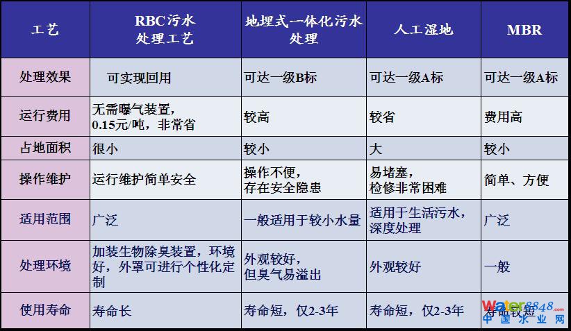 分散型污水處理技術(shù)采用工藝對(duì)比: