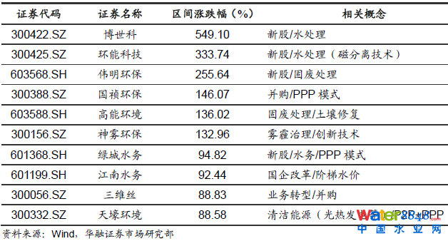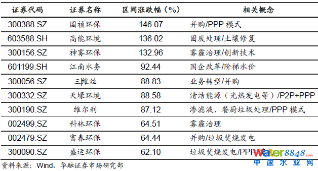 圖表2:環(huán)保行業(yè)漲幅前十公司