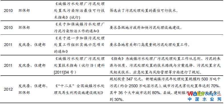圖表10:污泥處臵處臵相關(guān)政策梳理