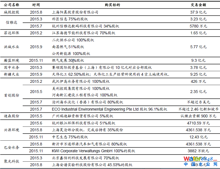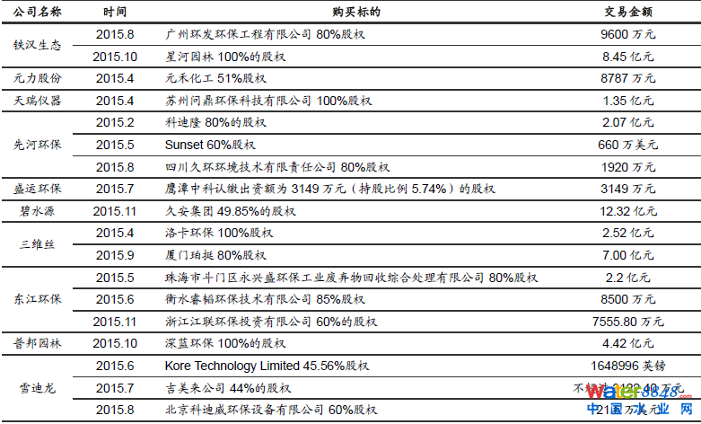 圖表5:2015 年環(huán)保公司并購統(tǒng)計(截至2015.11)