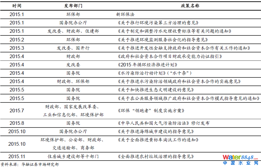 圖表4:2015 年出臺的部分環(huán)保政策(截至2015.11)