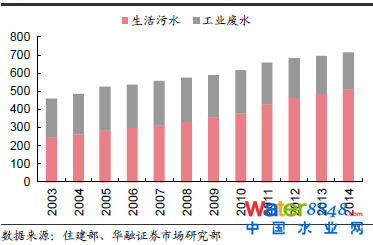 此次修訂稿的發(fā)布,也正式拉開了污水處理廠提標(biāo)改造的序幕。近年來,我國城鎮(zhèn)污水處理率不斷提升,截至2014 年底,城市污水處理率達到90.18%,污水處理廠集中處理率為85.94%。排放標(biāo)準的大幅提高預(yù)計將開啟污水廠的升級改造, 有望在2016-2017 年釋放大量需求。