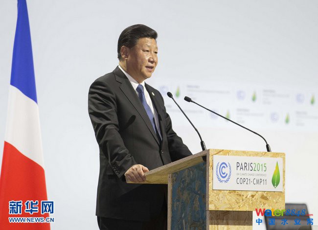11月30日,國(guó)家主席習(xí)近平在巴黎出席氣候變化巴黎大會(huì)開幕式并發(fā)表題為《攜手構(gòu)建合作共贏、公平合理的氣候變化治理機(jī)制》的重要講話。新華社記者 黃敬文 攝
