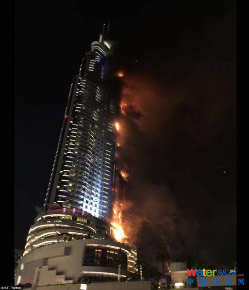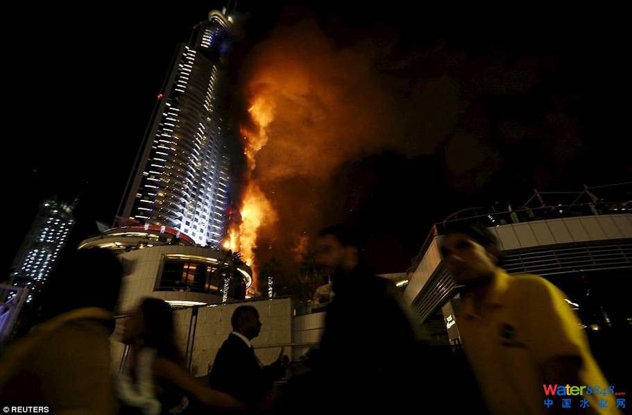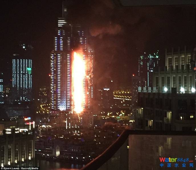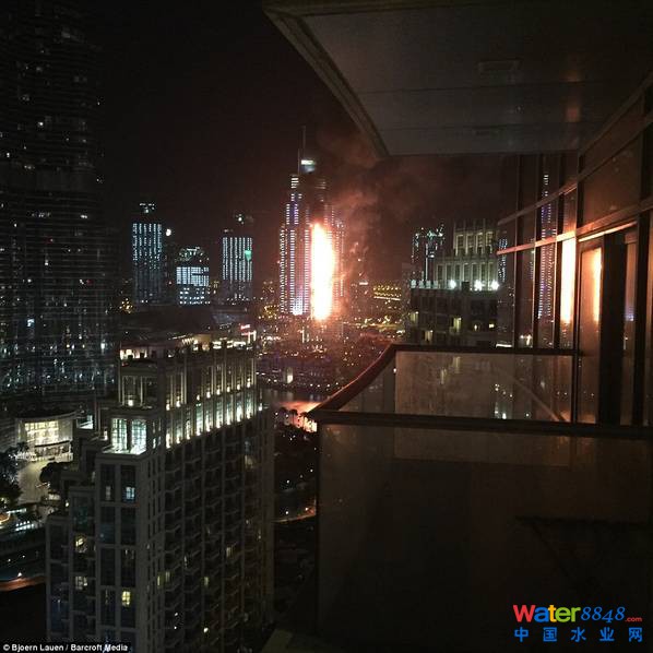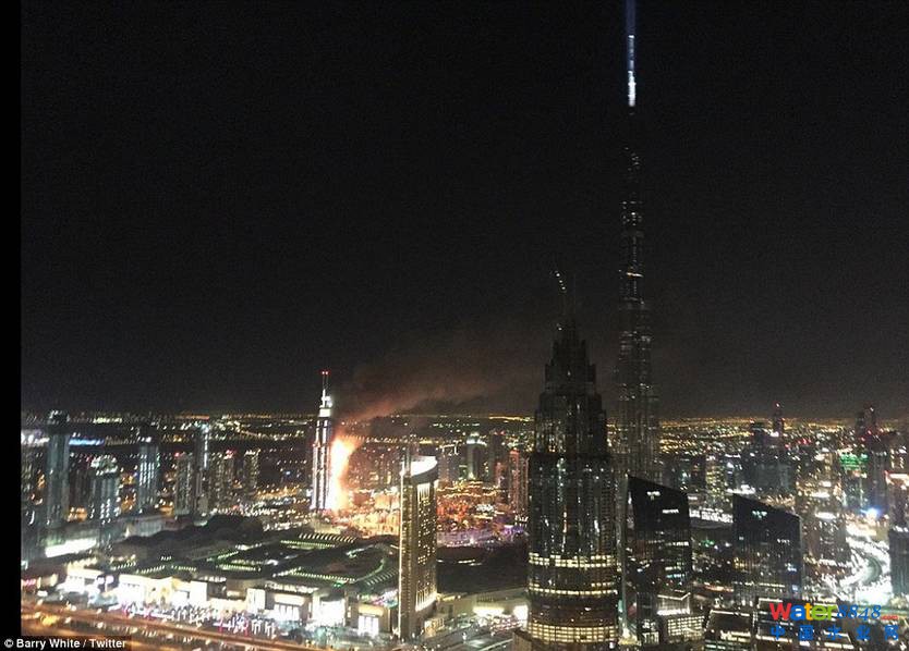 在火災(zāi)爆發(fā)之前,旁邊的哈里發(fā)塔正在準(zhǔn)備燃放新年焰火。在午夜到來之際,哈里發(fā)塔按照計(jì)劃燃放了焰火。