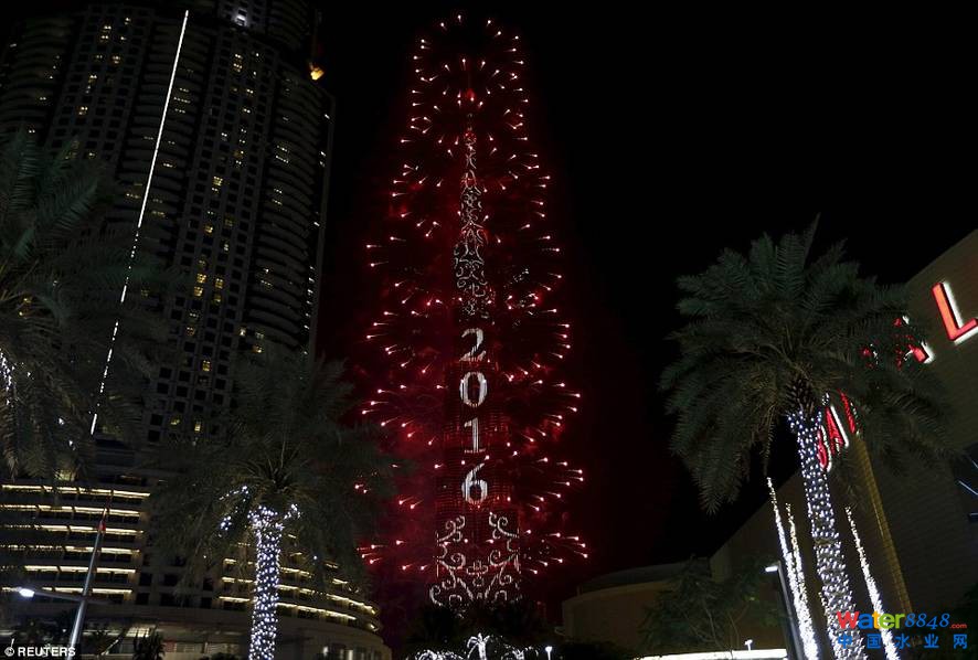 圖為迪拜焰火表演現(xiàn)場(chǎng)。