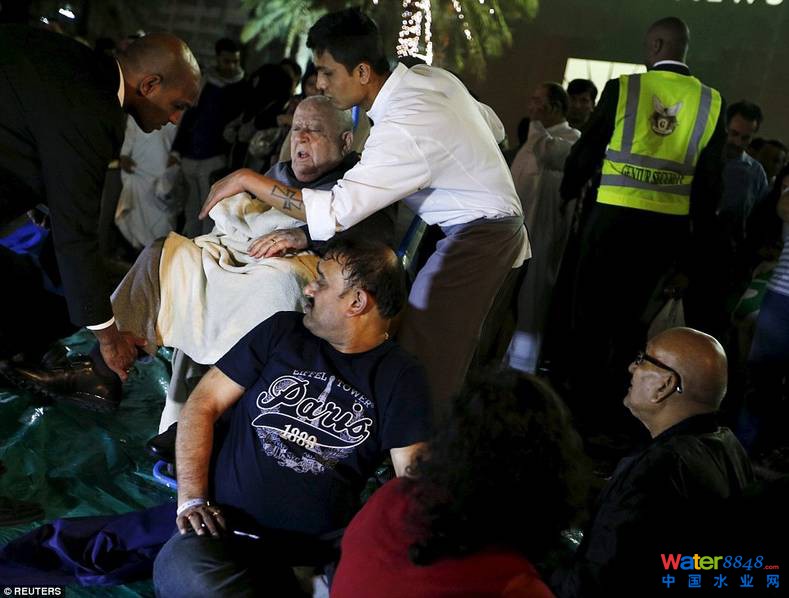 現(xiàn)場(chǎng)等待看焰火表演的人們與逃出大廈的人。