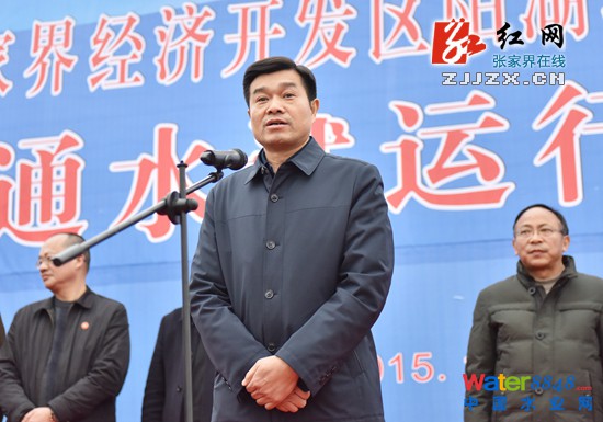 張家界經(jīng)開(kāi)區(qū)陽(yáng)湖坪污水處理廠通水試運(yùn)行儀式現(xiàn)場(chǎng)