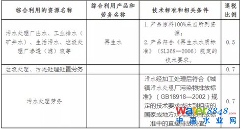 (3)應(yīng)按照法律法規(guī)及相關(guān)政策繳納有關(guān)稅費(fèi)。在《資源綜合利用產(chǎn)品和勞務(wù)增值稅優(yōu)惠目錄》分別對污水處理廠、污泥處理勞務(wù)、污水處理勞務(wù)在達(dá)到相關(guān)技術(shù)標(biāo)準(zhǔn)和條件時的退稅作了規(guī)定,詳見下表: