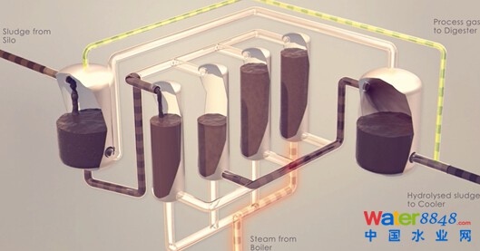 這是高碑店的效果圖,右上方是8個(gè)厭氧消化罐。左下角是四條熱水解生產(chǎn)線,上面是污泥脫水機(jī)。相信很快你們就可以看到我們高碑店項(xiàng)目,實(shí)際的實(shí)景項(xiàng)目。高碑店項(xiàng)目實(shí)現(xiàn)了對(duì)污泥處置的四化:1.穩(wěn)定化。污泥中可生物講解有機(jī)物含量減少約90%,2.減量化。減少60%污泥體積。3.資源化;4.無害化。高級(jí)厭氧消化、厭氧氨氧化技術(shù)因?yàn)橛辛丝当痰臒崴夤に囘M(jìn)行污泥預(yù)處理,所以我們高級(jí)厭氧消化比傳統(tǒng)的厭氧項(xiàng)目有優(yōu)勢(shì)。首先,高級(jí)厭氧消化工藝,比傳統(tǒng)的降解效率更高。污泥的最終處置方面,采用熱水解工藝能夠?qū)崿F(xiàn)污泥完全的封閉消毒、殺滅病原體。還有就是沼氣產(chǎn)量方面,因?yàn)樘岣吡私到饴,提高了沼氣產(chǎn)量。我們的沼氣產(chǎn)量能夠比傳統(tǒng)的厭氧消化產(chǎn)生更多的沼氣,這樣資源化的效率就會(huì)更明顯。最后,因?yàn)槲覀兺ㄟ^熱水解以后污泥改性黏度下降,脫水效果更好,污泥最終實(shí)現(xiàn)了減量化,可以減少外運(yùn)的成本,同時(shí)也可以滿足土地利用的效果。當(dāng)然,還有別的優(yōu)勢(shì)。比如:我們的沼氣硫化機(jī)含量也會(huì)更低一點(diǎn)。
