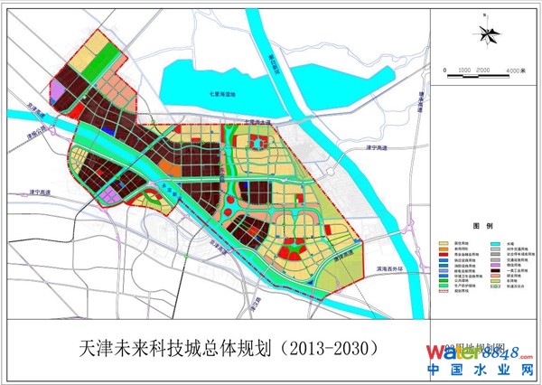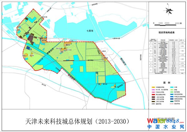 總體規(guī)劃四至范圍:東至七里海濕地保護(hù)區(qū)的緩沖區(qū)邊界;南至薊汕聯(lián)絡(luò)線、京津高速公路;西至潘莊工業(yè)區(qū)西邊界;北至潘莊工業(yè)區(qū)北邊界、七里海濕地保護(hù)區(qū)的試驗區(qū)。