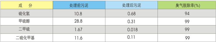 表1 處理前后污泥臭味成分對(duì)比 單位:PPM