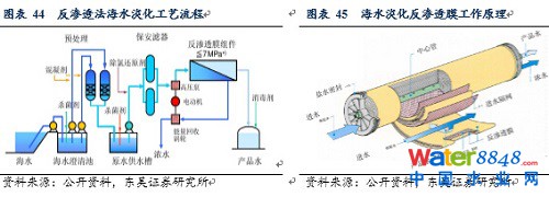 水處理過程中常用到的膜包括微濾膜、超濾膜、納濾膜和反滲透膜,對雜質(zhì)的處理能力遞增,對于水中的鹽類或小分子的去除只能使用反滲透膜或納濾膜。由于可滿足污水處理較高的出水水質(zhì)、再生水回用和海水淡化等各類需求,未來將迎來廣闊市場空間。
