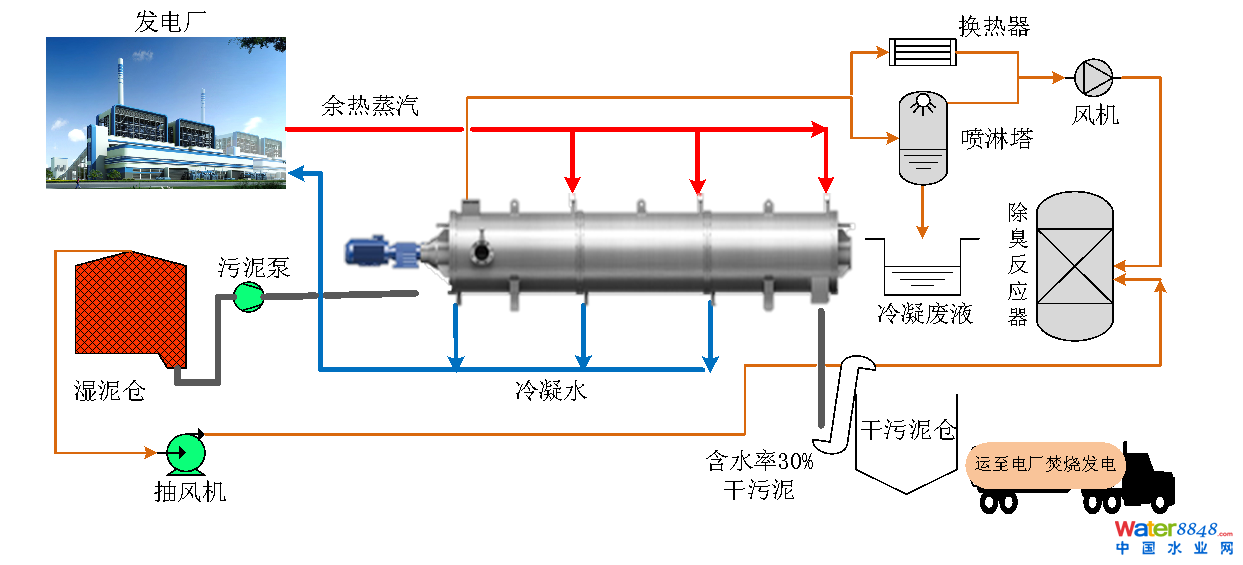 巴安水務(wù)推行的市政污泥干化協(xié)同發(fā)電技術(shù),此技術(shù)以市政污水廠污泥為處理對象,以污泥干化系統(tǒng)為核心,以電廠協(xié)同發(fā)電為最終處理手段,形成了由發(fā)電廠、污泥干化廠和市政污水處理廠三方面構(gòu)成的一套完整的污泥資源綜合利用處理系統(tǒng)。