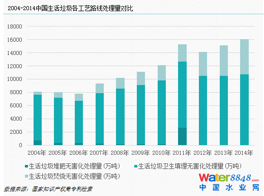 90年代末,垃圾填埋的對(duì)環(huán)境的威脅及占地問(wèn)題開(kāi)始得到重視,規(guī)范化和逐步取代填埋的政策導(dǎo)向開(kāi)始確立。2000年起,《城市生活垃圾處理及污染防治技術(shù)政策》、《可再生能源發(fā)電價(jià)格和費(fèi)用分?jǐn)傇囆修k法》、《生活垃圾焚燒污染控制標(biāo)準(zhǔn)》等一系列法律、規(guī)劃、和標(biāo)準(zhǔn)逐步奠定了垃圾焚燒工藝路線發(fā)展的政策環(huán)境,填埋所占的垃圾處理量比率開(kāi)始不斷降低,而以焚燒為主的其它工藝的處理量比率不斷升高。由于焚燒的技術(shù)含量更高以及核心設(shè)備(焚燒爐等)的國(guó)產(chǎn)化需求,我國(guó)的第一個(gè)固廢處理技術(shù)創(chuàng)新高峰也在這一時(shí)期到來(lái)。與此同時(shí),垃圾處理市場(chǎng)化進(jìn)程也在逐步往前走,如桑德環(huán)境(合加資源)、三峰環(huán)境、綠色動(dòng)力環(huán)保等現(xiàn)今已成為行業(yè)龍頭的幾家固廢處理(垃圾焚燒)企業(yè)也在此階段完成關(guān)鍵性的資源積累,開(kāi)始在業(yè)務(wù)上快速橫向擴(kuò)張(跑馬圈地)。